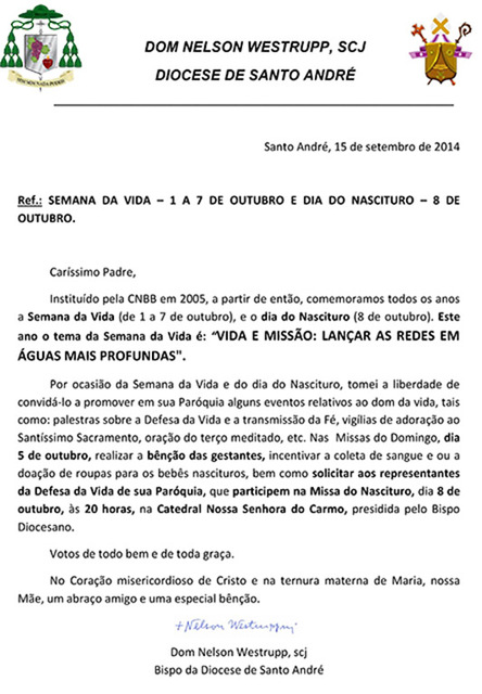 CARTA DE DOM NELSON (SEMANA DA VIDA) E BENÇÃO DAS GRÁVIDAS