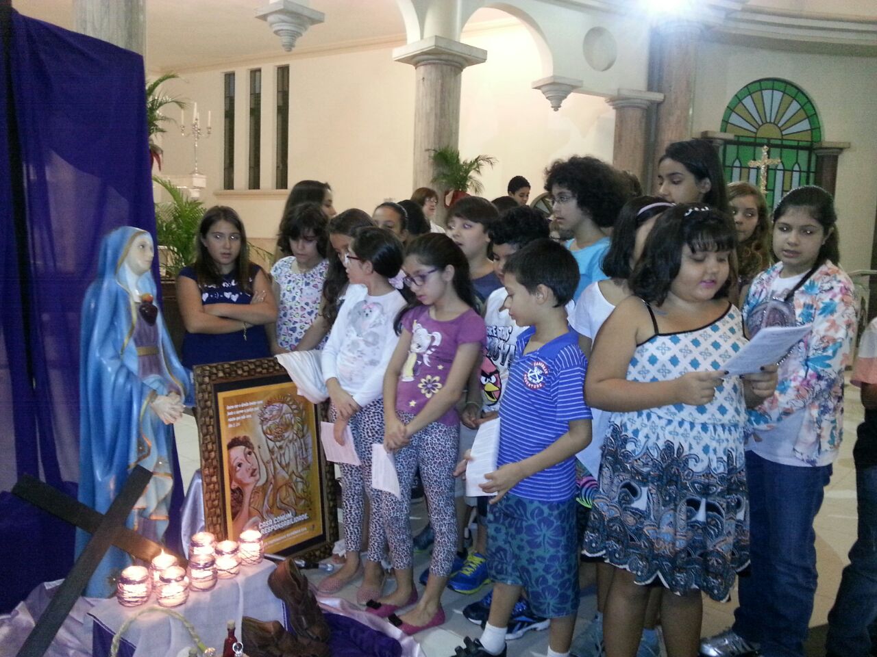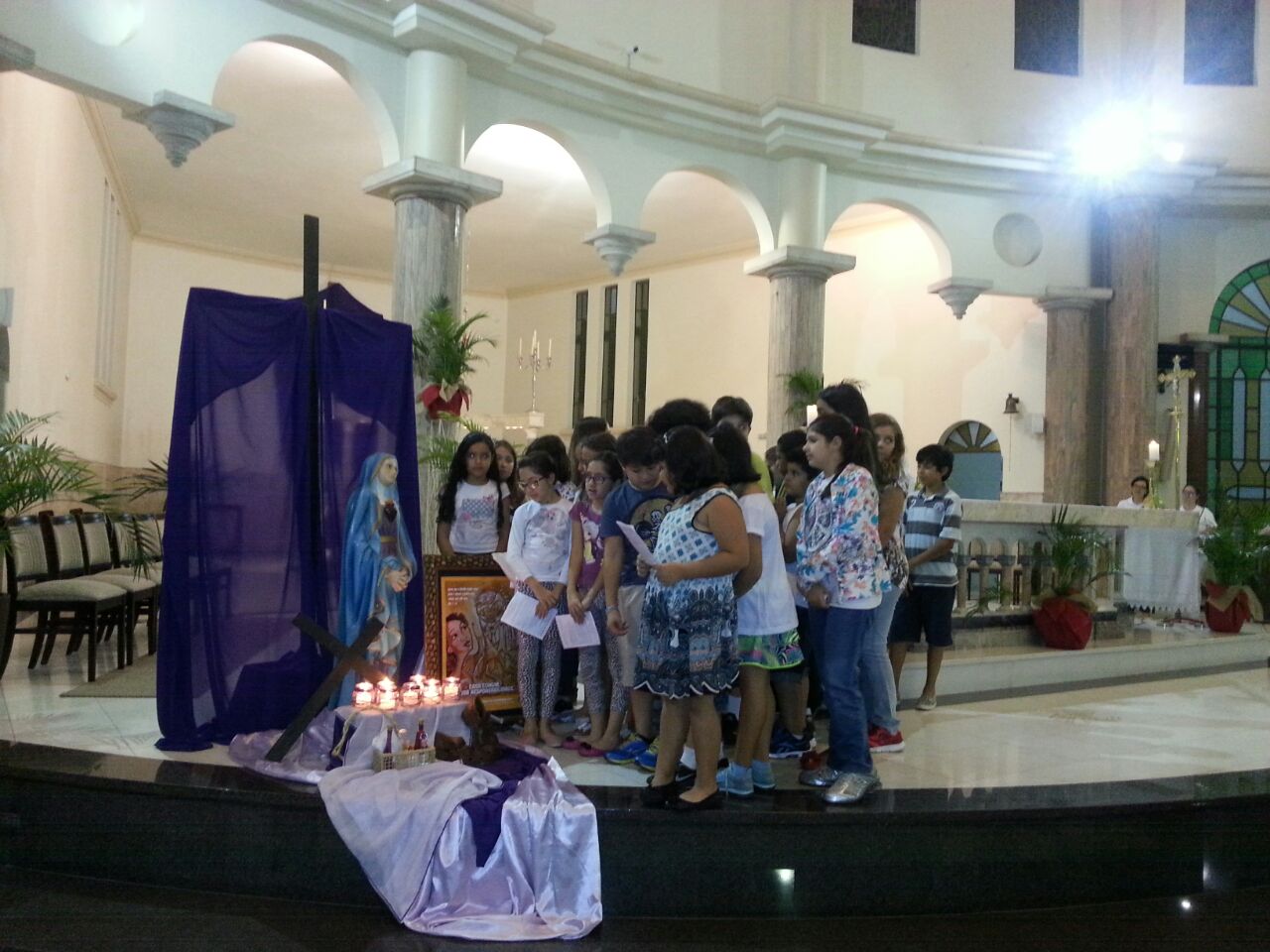 Na terça feira santa contemplamos as dores de Nossa Senhora juntamente com as crianças da catequese. Momento de grande emoção e também de revigorar nossa fé.